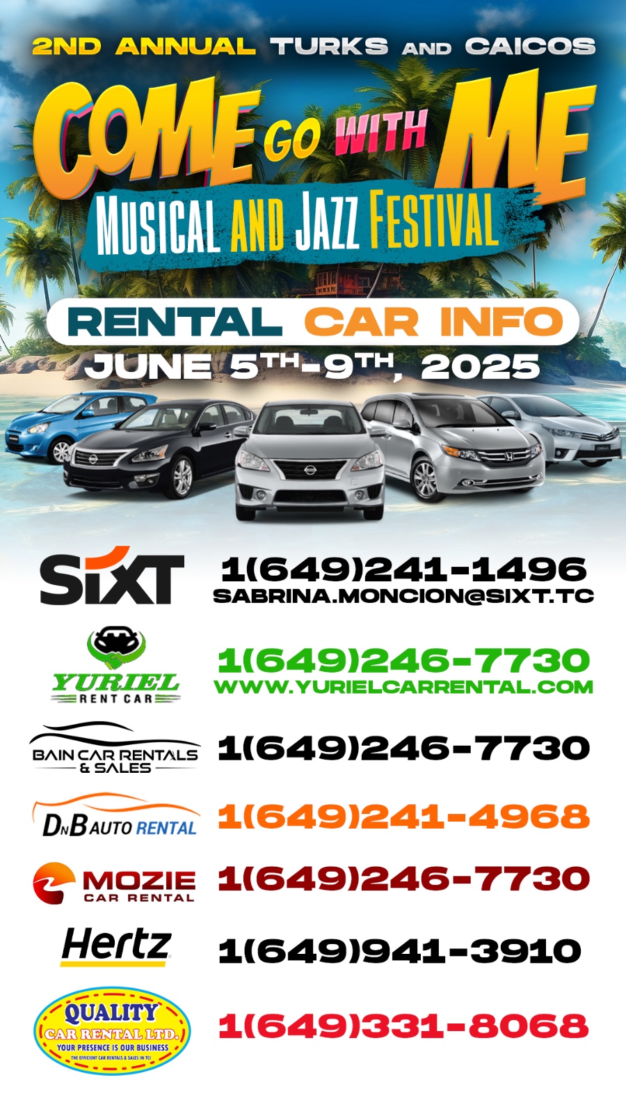 - Sixt: 1(649)241-1496 – sabrina.moncion@sixt.tc